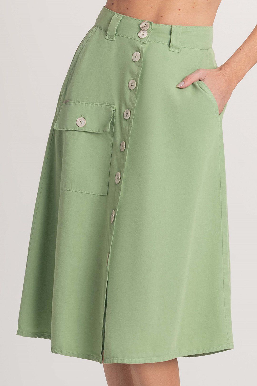 Saia Midi Verde Em Sarja Com Botões E Bolsos Frontais - 104075