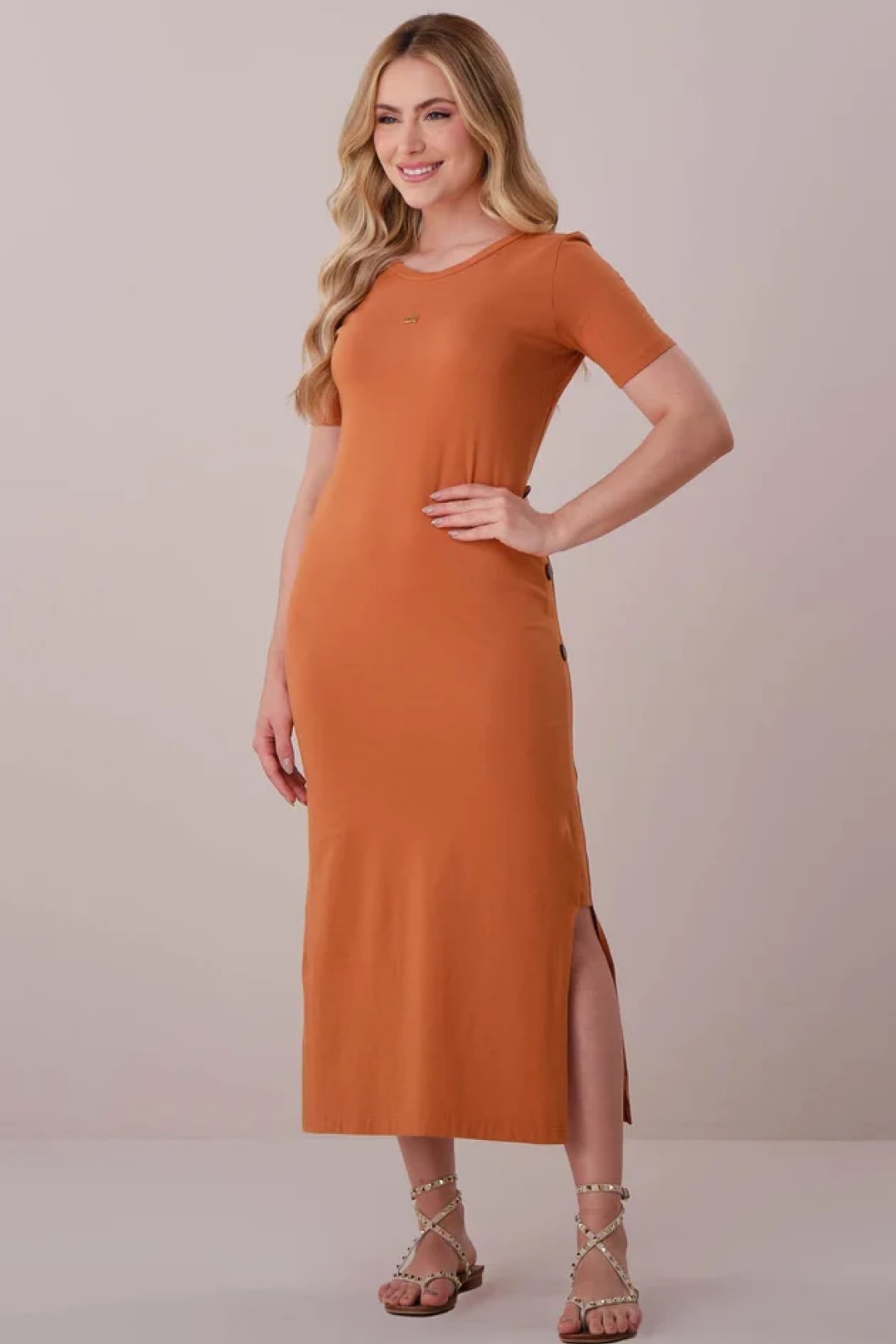 Vestido Maxi Midi Telha Em Malha Com Fendas E Botões Laterais Tatá Martello - 06317