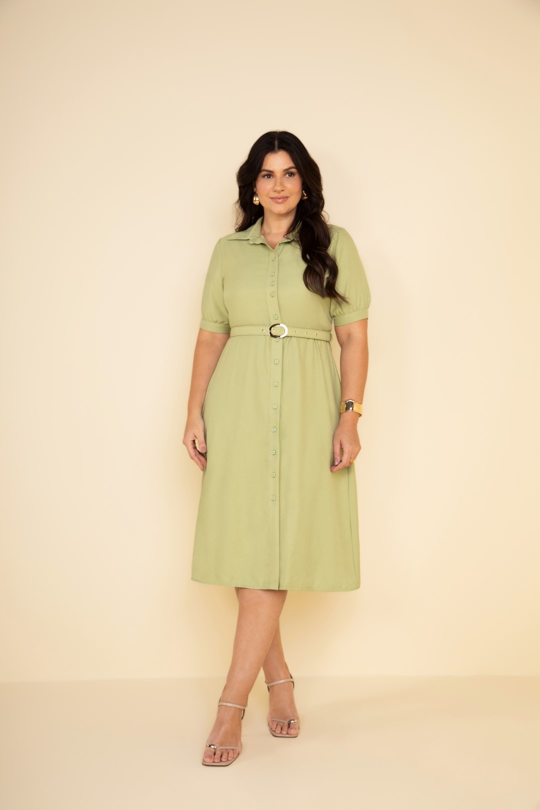 Vestido Plus Size Chemise Midi Verde Em Viscopoly Acompanha Cinto Hadaza - 51666