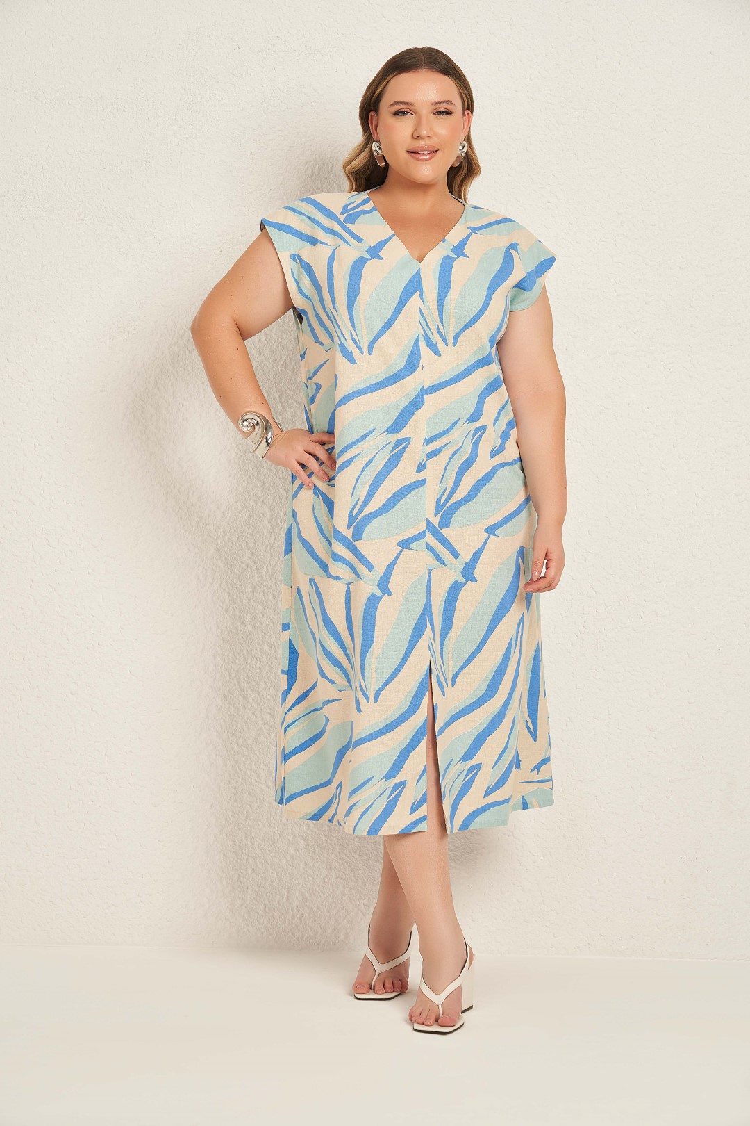 Vestido Plus Size Midi Estampado Em Viscolinho Com Fenda Frontal Lisamour - 202209