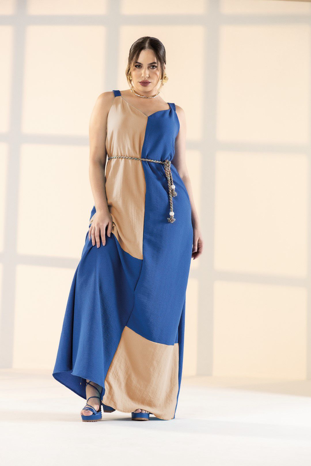 Vestido Regata Longo Bicolor Acompanha Cordão Elegance All Curves - 052539