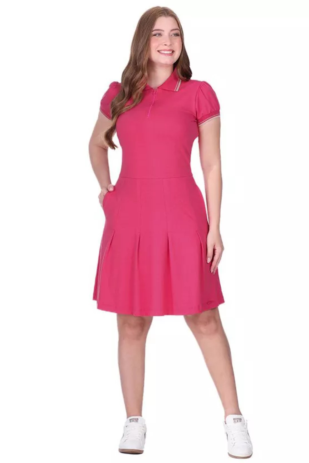 Vestido Rosa Em Malha Cotton Com Gola Polo Em Retilínea Hapuk - 61988